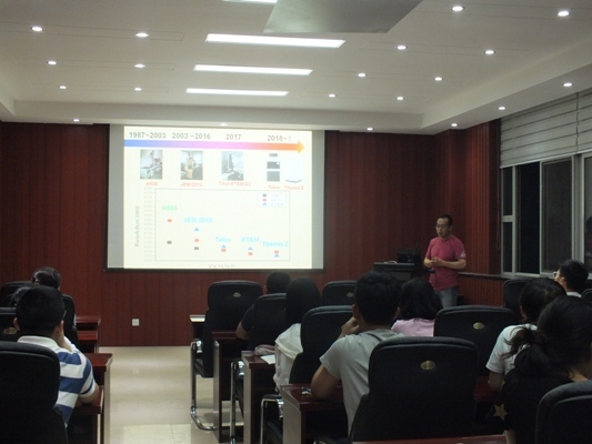 胡文涛老师介绍了学院于1987年购买第一台透射电镜H800,2003年购买了第二台的JEM-2010,以及2016年新购置的第三台Titan ETEM G2透射电镜更新过程。重点介绍了Titan ETEM G2的分辨率、气氛和附件的主要特征。随后胡老师又向大家介绍了学院于2017年订购的Themis Z和Talos两台透射电镜,由于Themis Z和Talos使用电脑系统操作,既方便使用又减小了手动操作误差对透射电镜的损坏,因此学生可以经过培训之后可独立操作。从H-800到Themis Z和Talos,从无到有,从有到精,设备的不断更新使得研究人员能够获取更加准确的实验数据,为各研究课题的改进提供技术保障,有力地促进了安博体育