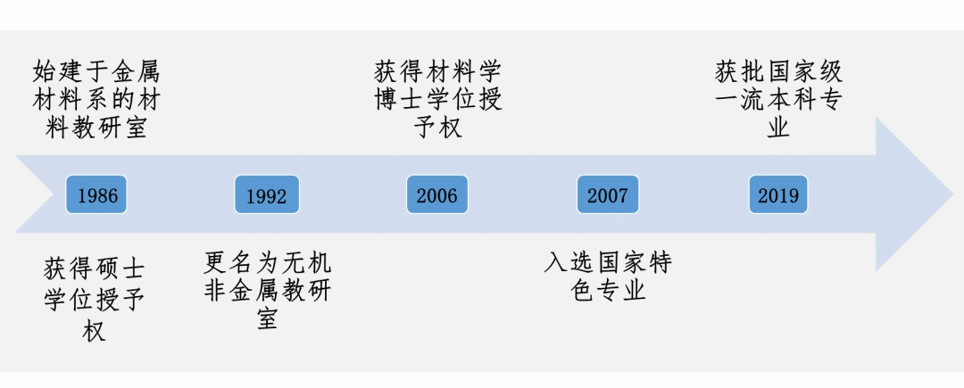 无机非金属材料工程专业源于1986年建立的金属材料系材料教研室,1992年更名为无机非金属教研室。1986年获得硕士学位授予权,2006年获得材料学的博士学位授予权,2007年入选国家特色专业,2019年入选国家级一流本科专业建设点。本专业集本科教学、基础研究及应用研究为一体,形成了完备的教学和科研体系,为国家超硬材料领域和行业培养了学术领军人才田永君院士,企业精英郑州磨料磨具磨削研究所有限公司闫宁董事长等为代表的大批优秀人才。