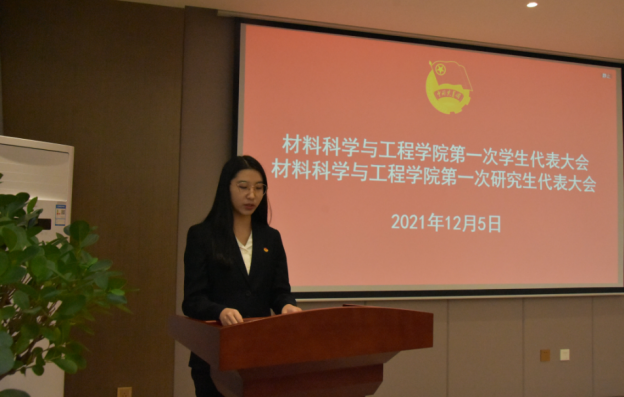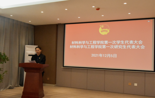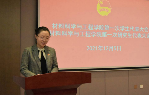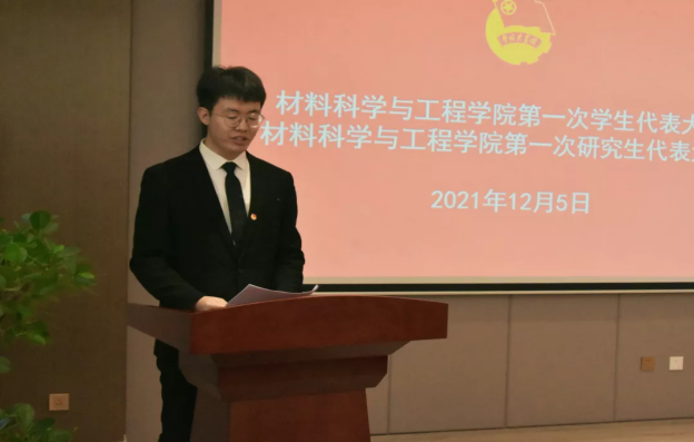 随后,刘昕浩和马龙龙分别代表学院学生会和研究生会以《不忘初心、牢记使命,深化改革、与时俱进,拥抱新时代,担当新使命》和《青春共筑中国梦,继往开来材料人》为题向大会作工作报告。