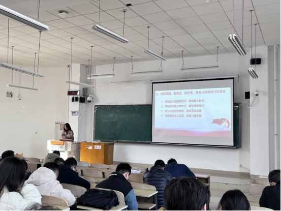 副处级辅导员王亦晨在西(二)208教室,为学院党课培训班学员讲授“做有理想、敢担当、能吃苦、肯奋斗的新时代好青年”的专题党课。来自学院本、硕、博共计200余名党员和入党积极分子参加并听取了党课。