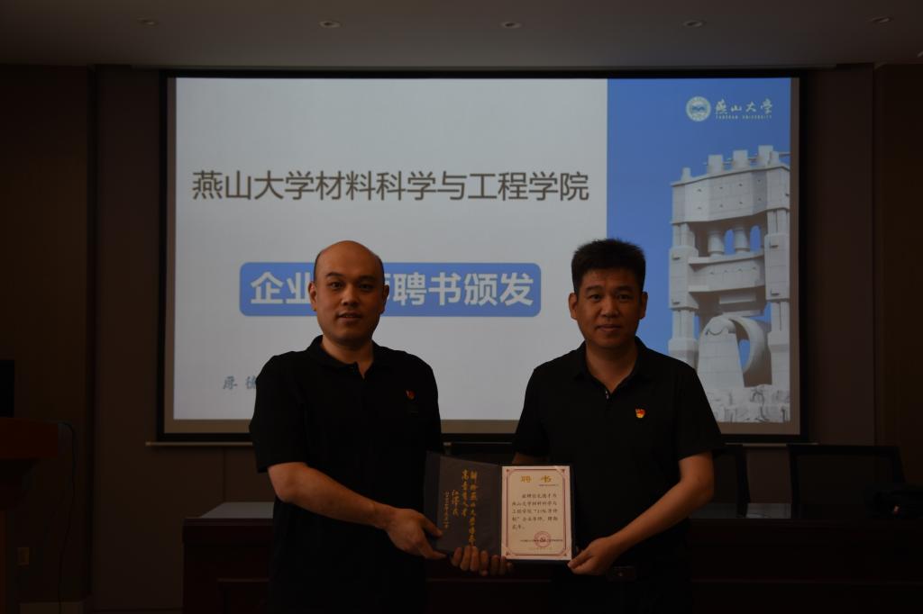 “1+N导师制”企业导师聘任仪式在材料B馆424室举行。本次聘任的企业导师为中信戴卡股份有限公司仿真工程师、2002级无机非金属材料专业校友孔德才。学院党委副书记袁云岗为孔德才颁发了“1+N导师制”企业导师聘书。活动由学院副处级辅导员王亦晨主持。