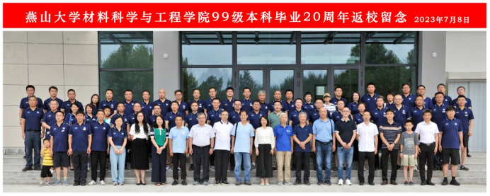 党委常委、副校长王利民、学院党委书记李曦达、副书记袁云岗、国家重点实验室副主任张春祥、副处级辅导员王亦晨以及各系室专业任课教师为各位校友举行了欢迎仪式。王校长对各位校友的到来表示了衷心的欢迎,他从学院师资、学科建设、科研成果等多个方面向各位校友讲述了近年来学校学院的发展与成绩,正是校友们形成的“厚德、博学、求是”的优良校风,激励着一代又一代的燕大人、材料人努力奋斗,在校时你们以母校为荣,现在学校以你们为荣,燕大材料永远是校友们的精神家园与坚强后盾。随后,校友们按专业分三个场地和各位专业老师进行了近距离的交流座谈,你一言我一语,共同回忆大学四年的师生情谊和校园往事,回顾过去20年各自的人生经历,感恩燕大材料给每一个人带来的进步与收获。座谈交流后,大家在材料馆楼前合影留念。