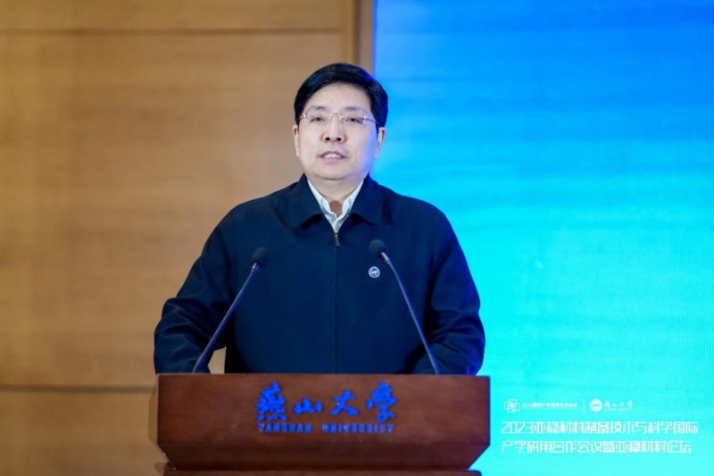 院长张新宇主持。河北省教育厅副厅长侯建国代表主办单位致欢迎辞。他从亚稳材料的重要作用出发,表达了河北省教育厅对该领域科学研究的支持态度,并结合省教育厅在产学研用合作方面的相关政策,对亚稳材料相关领域技术研究以及国际产学研用合作的发展寄予期望。