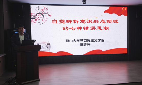 新办公楼113会议室以《自觉辨析意识形态领域的七种错误思潮》为主题,为学院16名发展对象和42名学生党员讲授专题党课。