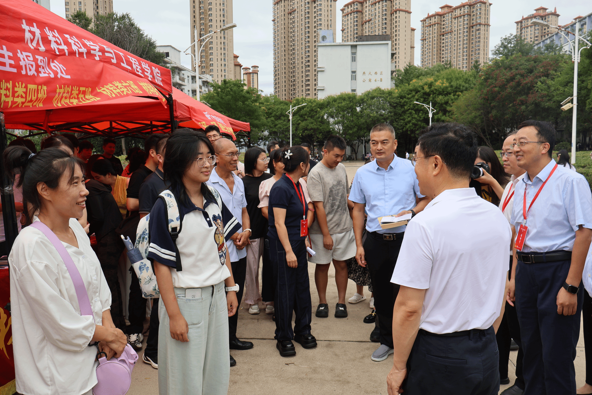 校、院领导来到迎新现场,与新生及家长亲切交流,仔细询问报到情况,耐心叮嘱全体新生尽快适应校园生活、融入集体环境,在材料学科领域扎实求知、探索创新,开启新的成长旅程。校党委书记赵险峰在报到现场题下“立鸿鹄之志,怀家国情怀”,以此寄语2025级本科生李鸿尧同学,更借此向全体新生传递殷切期望,鼓励大家在新的求学阶段树立远大理想、涵养家国担当,以青春之力在专业领域深耕,不负时代与韶华。