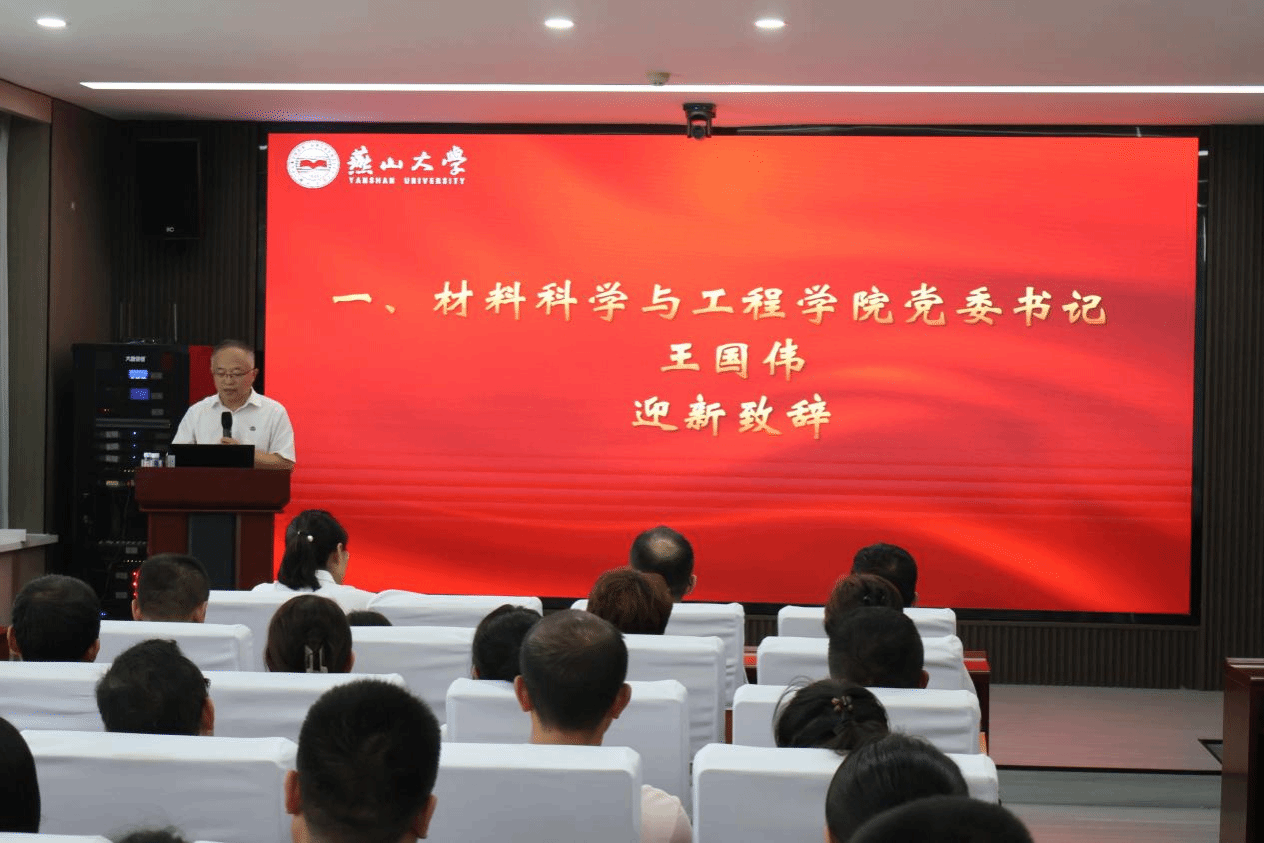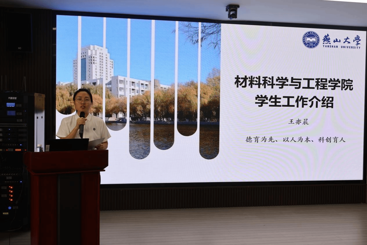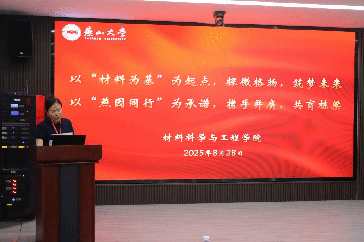 特聘心理导师陶建刚、金属材料工程系主任李艺君、无机非金属材料工程系主任邱海龙、材料物理系主任薛天宇、高分子材料工程系主任张振琳出席会议,2025级本科新生辅导员冯晶担任主持。