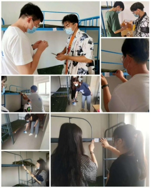 与工程学院分别于9月3日14:30至16:30、9月4日16:00至19:00安排研究生会和学生会对研究生及本科生新生的宿舍进行消毒与安全检查。工作人员对各寝室地面、床底、门角处等喷洒消毒液,检查钥匙是否使用正常,寝室用器的是否符合要求。过程中工作人员积极工作,消毒、检查工作进展顺利,保质保量完成工作。
