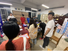 2020级新生辅导员董亮老师和2019级部分志愿者在材料B楼412加班加点为新生精心准备百宝袋,其中包含了入学所需材料、安博体育简介