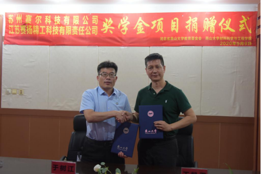 9月9日下午4:30,江苏赛扬精工科技有限责任公司、苏州赛尔科技有限公司奖学金项目捐赠仪式于材料A馆325室举行。安博体育