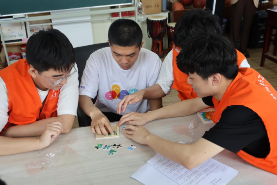 揭牌仪式后,大学生志愿者与孩子们进行了亲密互动。他们共同游戏,以欢快的笑声打破拘谨,拉近了彼此心灵的距离;他们挑战拼图,在合作与沟通中培养默契,也锻炼了孩子们的专注力和思维能力。他们齐声歌唱,用动人的旋律传递着爱与欢乐,加深了彼此之间的情感联系。孩子们的脸上逐渐绽放出纯真无邪的笑容,仿佛春风拂过冰封的湖面,温暖了每一个角落。大学生志愿者们的热情与关爱,像阳光般洒落在自闭症儿童的心田,让他们感受到了人间的温暖与美好。