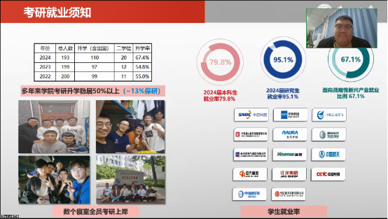 随后魏东向家长们介绍了学院的考研就业情况,通过对学院近三年考研数据解读,让家长充分了解当前考研现状,建议学生结合自身情况合理报考院校,就学生的下一步学习规划进行了探讨;并分析了当前高校毕业生就业现状,介绍了学院近年来在就业工作方面的具体举措及成效,建议家长引导学生要不断拓宽就业渠道,了解他们的真实想法和职业规划,为学生们提供合理化的意见和建议。