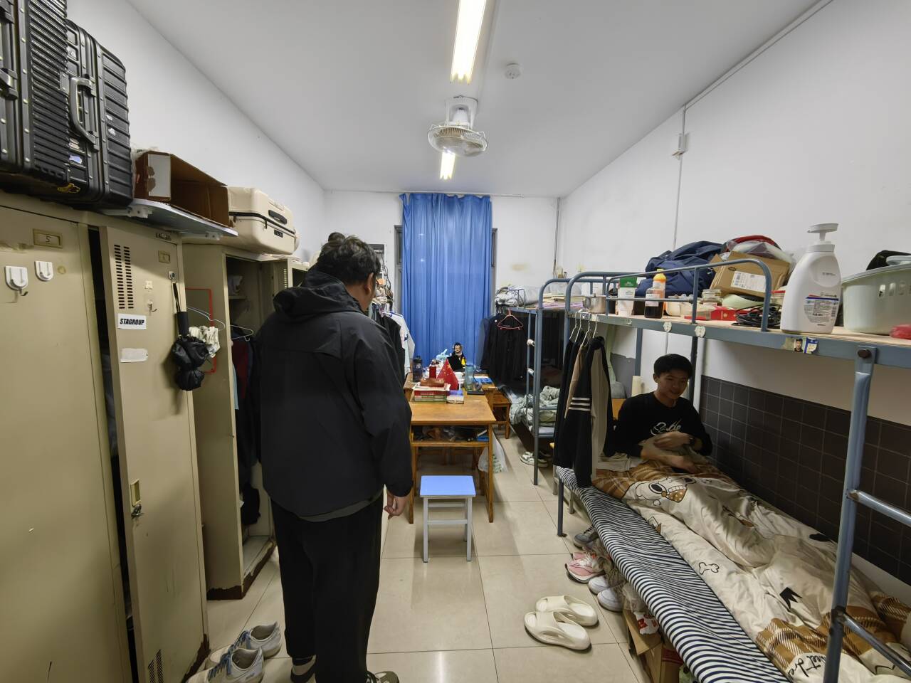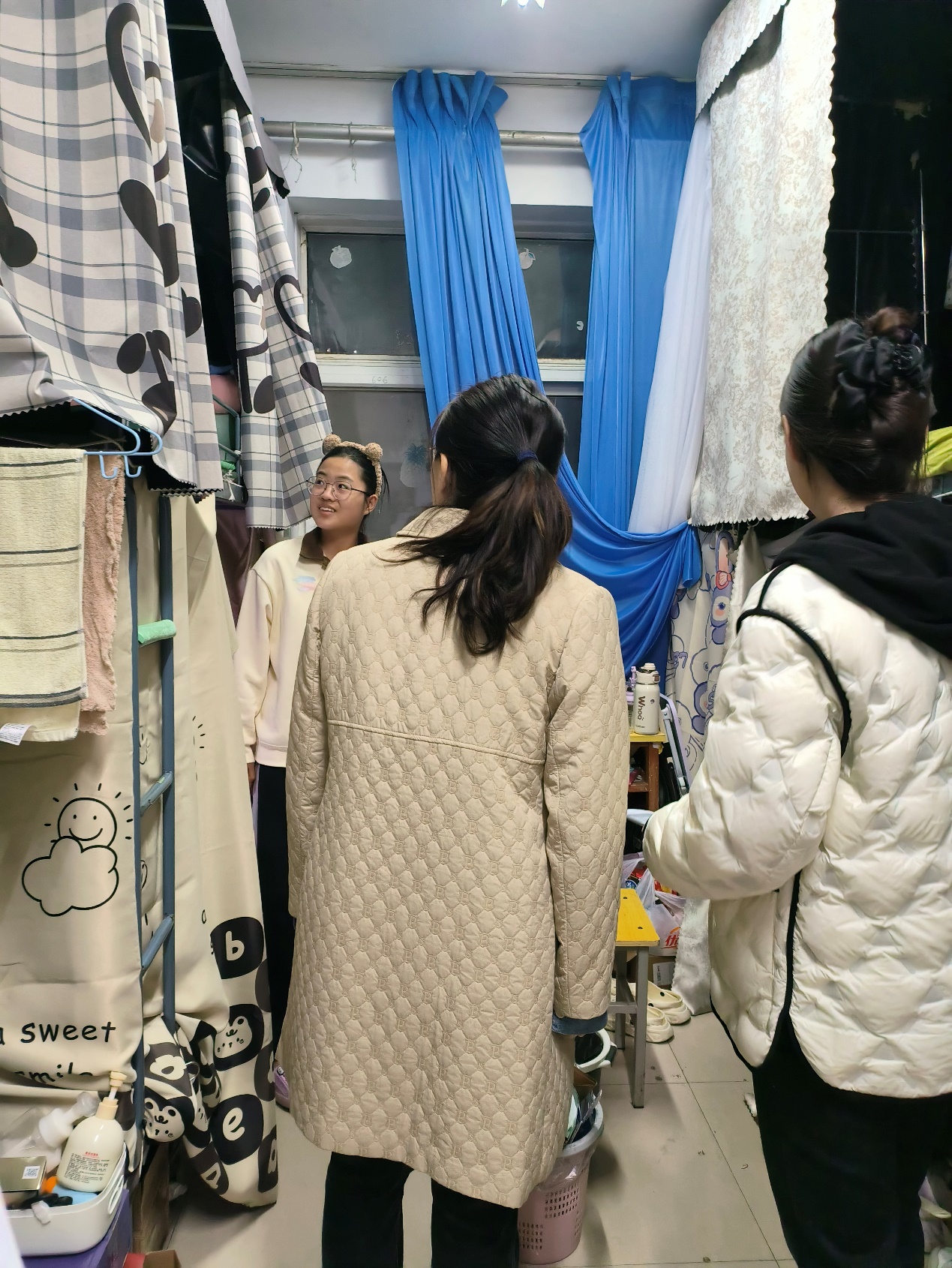 师生临时组建8支工作队,深入各组团学生寝室,以“地毯式排查+温情式服务”模式深入各学生组团。他们手持检查清单,重点开展三项核心工作:一是安全守护行动:逐间核查未归寝学生请假记录,现场演示安全用电规范,排查私接电线、违规电器等隐患,温馨提示寝室成员做到“人走断电”;二是文明共建行动:对照《安博体育