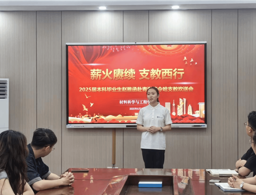 于2025年6月15日上午在材料新楼102会议室,为即将奔赴青海省德令哈市开展为期一年支教服务的2025届本科毕业生赵雅函举办了一场温情满溢的欢送会。学院党委副书记王亦晨、全体辅导员、安博体育