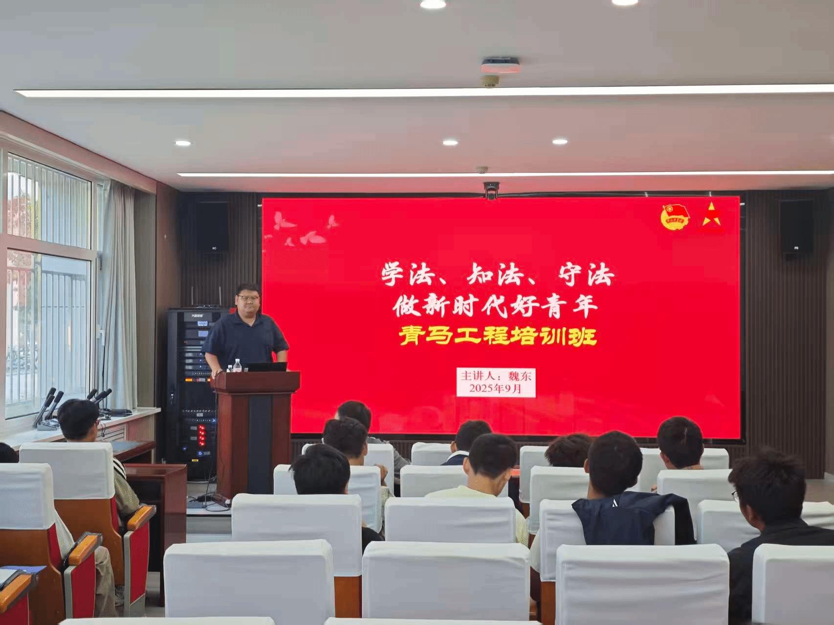 学院团委专门组织青马工程专题培训,100余名团学干部和入团积极分子参与其中。团委书记魏东以“学法、知法、守法,做新时代好青年”为主题,结合典型案例与青年责任,引导学员深化法治认知,强化担当意识。现场互动热烈,反响积极,进一步营造了学院内的法治文化氛围。