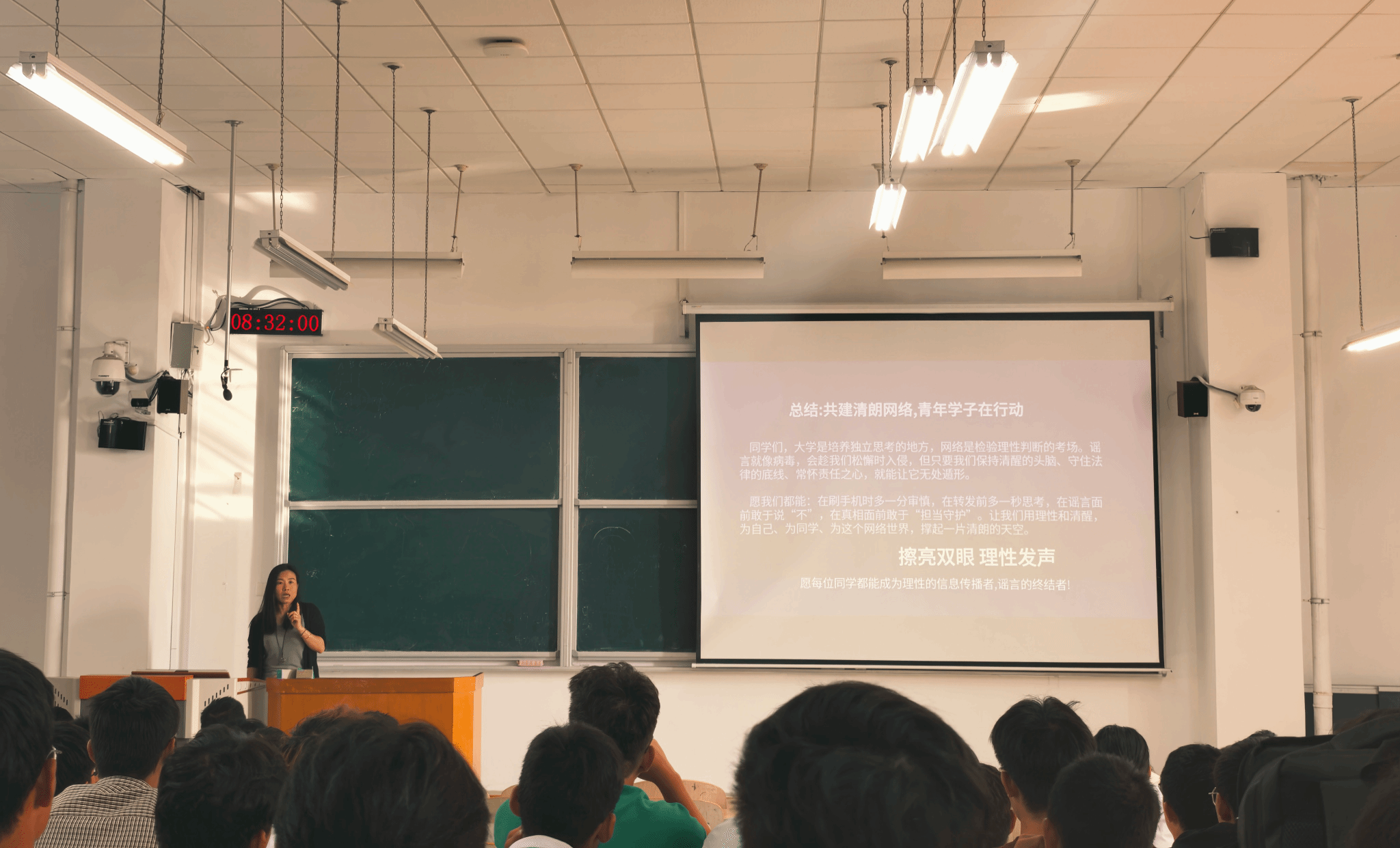 2025级本科新生开展了一场别开生面的入学法治教育大会。辅导员以“网络谣言与大学生的关系”为切入点,结合“网生一代”的网络信息接触场景,深入剖析了谣言的危害与防范意义,强调了法治素养的重要性。她通过典型案例和通俗法律解读,将抽象的法律知识转化为生活指引,让新生直观理解守法的必要性。围绕“知法、懂法、守法、用法”,鼓励新生从“不盲从、不传播”网络谣言升级为“辨真伪、敢发声”,争做“谣言终结者”,并寄语新生共建清朗网络空间。