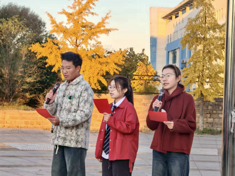 随后,郭怡萌、朱志颖、杨一童三位同学携手带来经典红歌《如愿》。悠扬婉转的旋律缓缓流淌,真挚动人的歌声饱含着对革命先辈的深切缅怀与对家国盛世的深情赞颂,将现场氛围推向高潮,让红色基因在歌声中浸润心灵、代代相传。