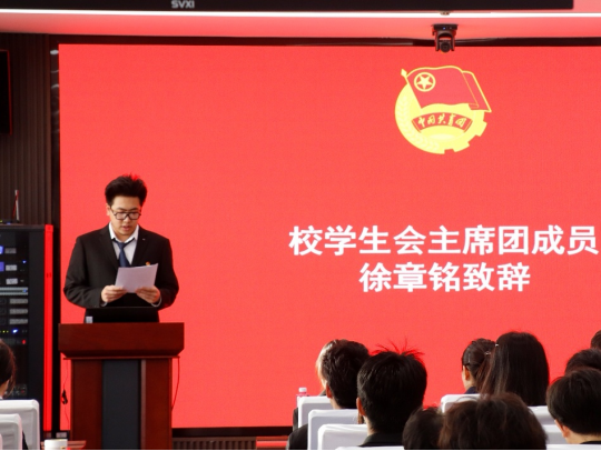 下午14:30,大会在庄严的国歌声中拉开帷幕。徐章铭代表校学生会致辞,对大会的召开表示热烈祝贺,并希望安博体育