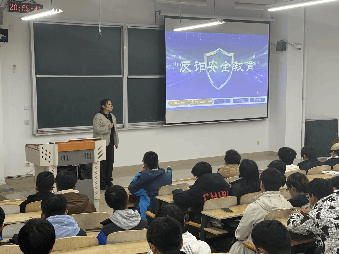 各年级辅导员结合分管年级学生的实际情况,专门召开反诈安全教育年级大会。会上,辅导员梳理了近期高校学生被骗的典型案例,重点关注学生群体中易发生的诈骗风险点,针对性地强调了网络社交、线上兼职、校园贷等领域的防诈注意事项。同时,辅导员向学生传达了学校反诈宣防工作的要求,提醒学生提高警惕,不轻易透露个人信息、不随意点击陌生链接、不向陌生账户转账,引导学生树立“理性消费、安全上网”的理念,并鼓励学生主动向身边同学宣传反诈知识,形成“人人是宣传员”的良好氛围。